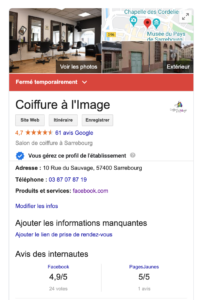 Voici un exemple pour un salon de coiffure situé à Sarrebourg.